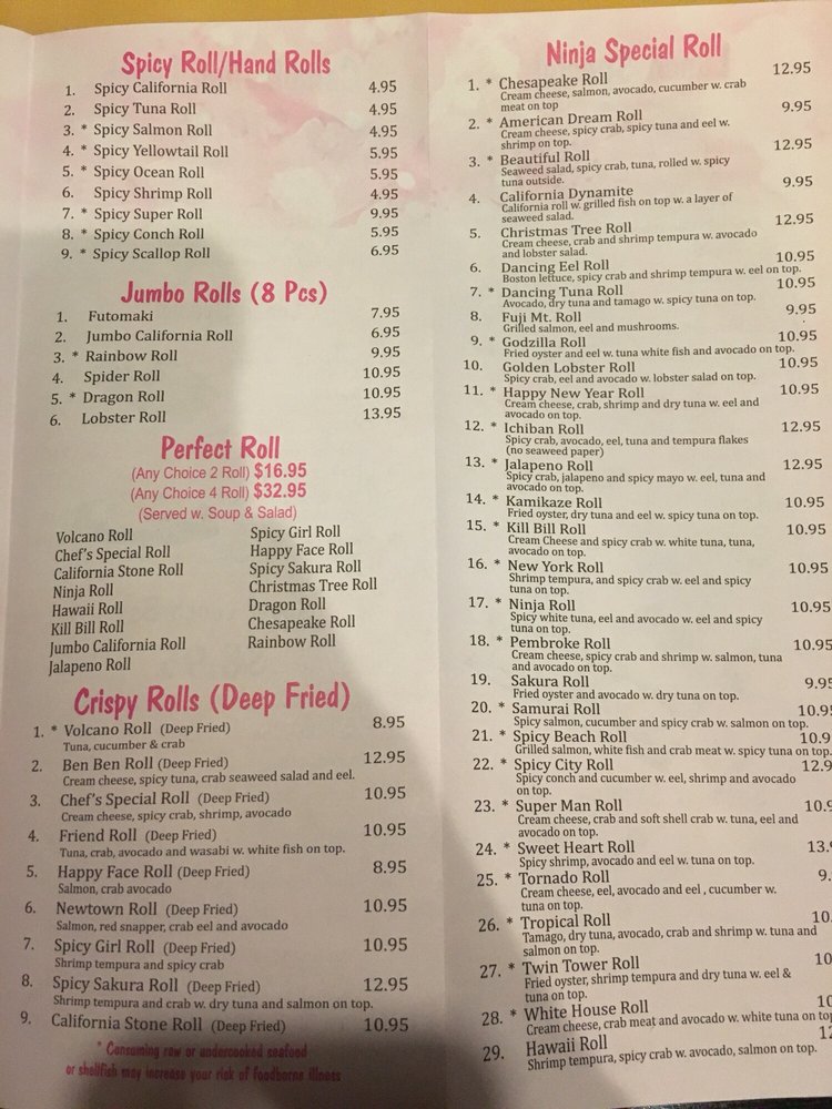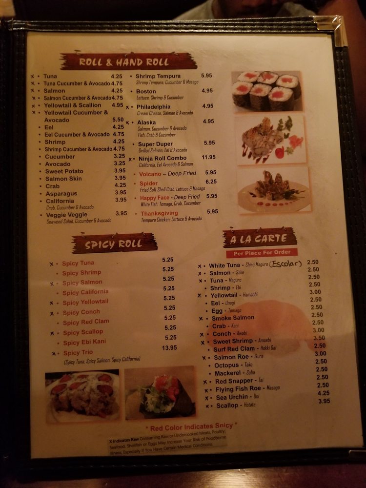 Introducing the Menu at Ninja Sushi Bar & Japanese Restaurant